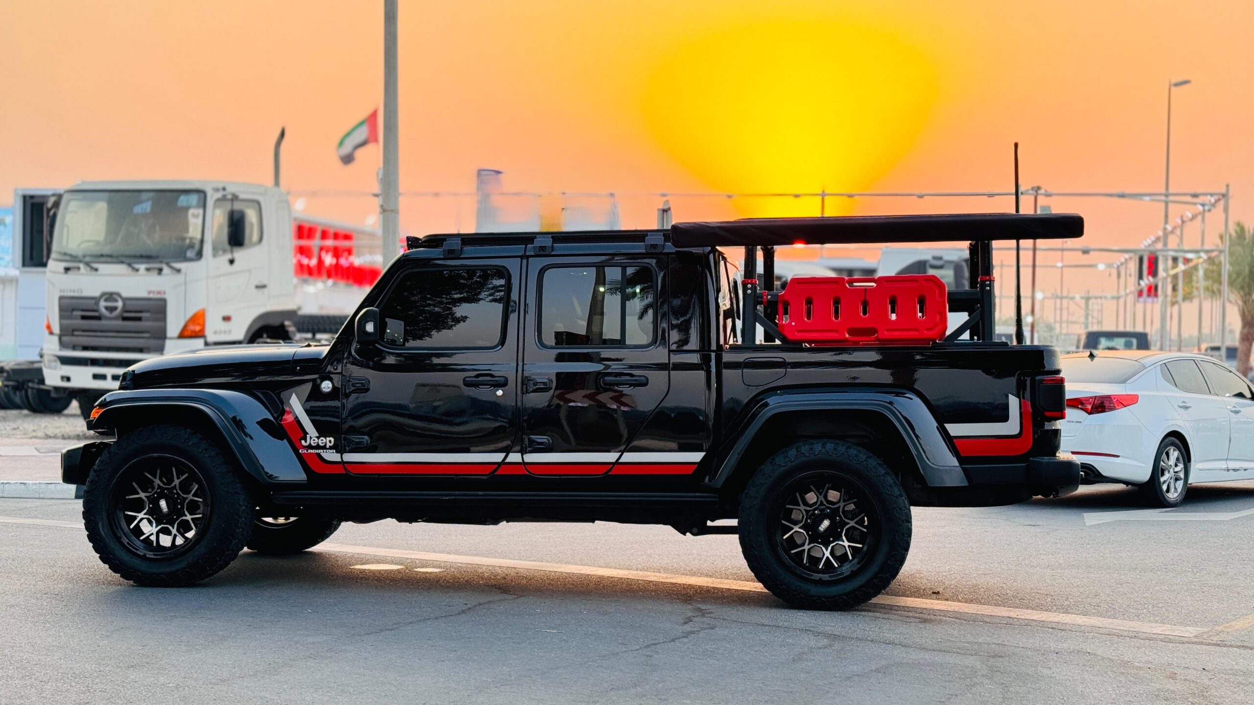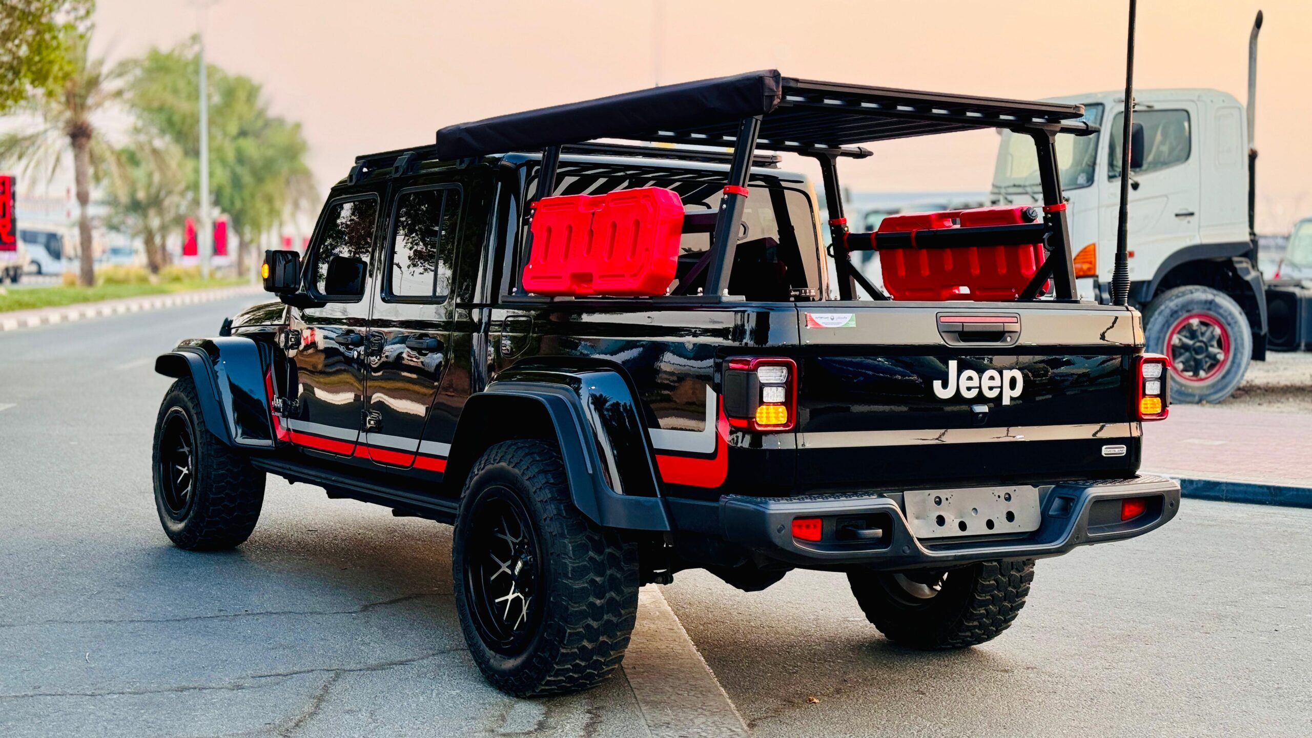 Premium Leather Seats – Rear View Camera – Steering Control Switches – Awning Side Camping Tent – Heavy Bed Rack For Camping – Cruise Control – Push Start Engine – Multimedia Screen -traction Control – Roof Rack – Roof Mounted Led Strip Lights – Side Skirts – Power Windows – Dark Tinted – Alloy Rims