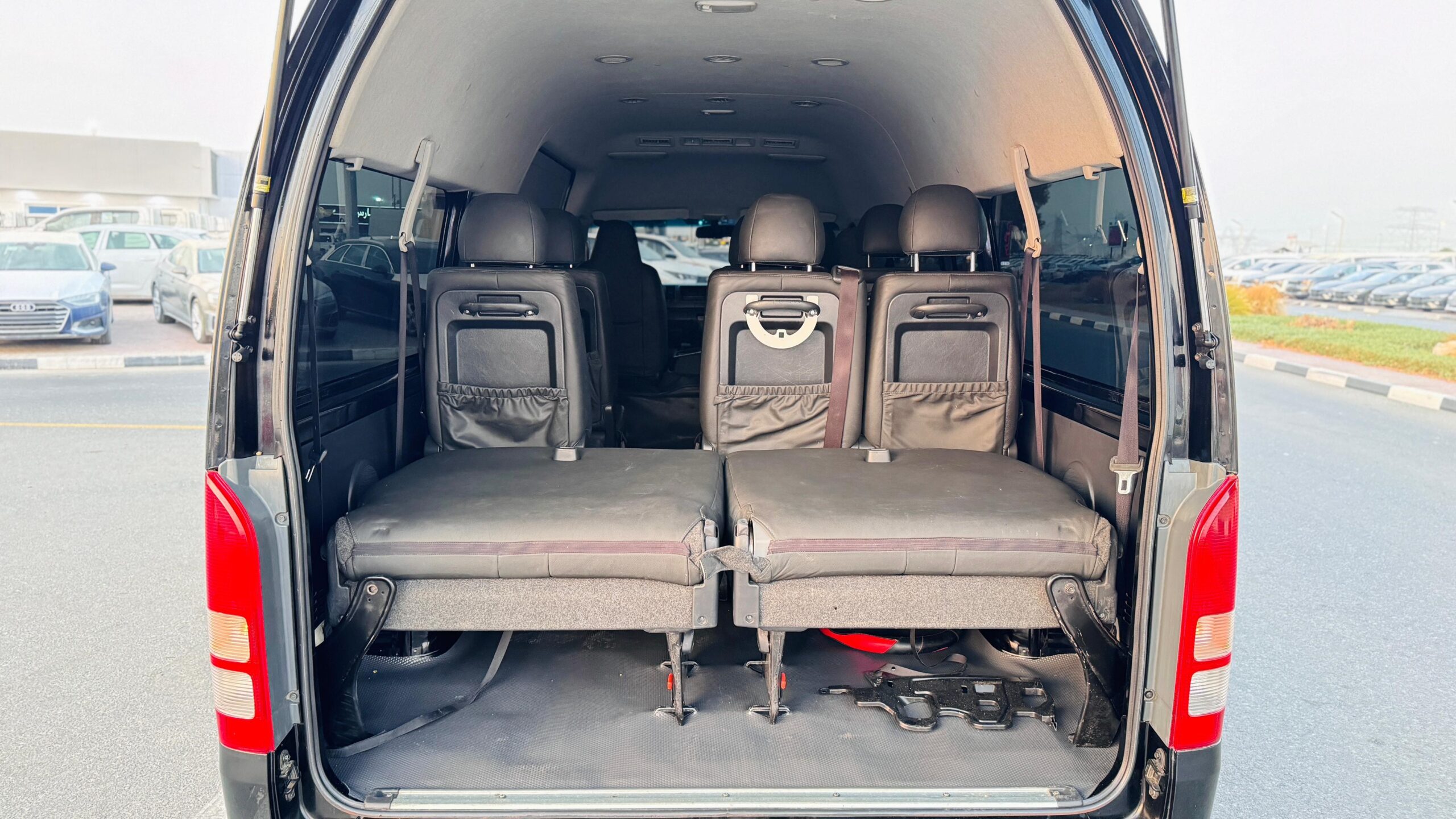 Power Sliding Door – 14 Seater – Premium Comfort Leather Seats – Traction Control – Multimedia Screen – Digital Rear View Camera – Power Windows – Tinted Windows